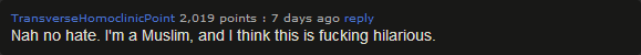 It’s a pretty smart jab at a popular meme going around tumblr that features various things boys do that girls are into. It also touches on somewhat of a sensitive topic, the state of women in primarily Muslim countries. A sizable amount of people though this was pretty funny, and were also responsible for voting up the top comment on the image: