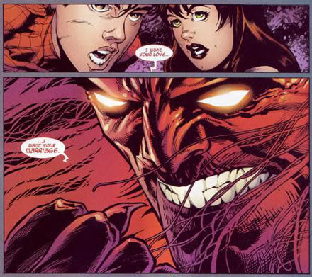 literally selling their marriage to the devil. I’m not going into why or how, but that is how badly editorial at the time wanted to end their union. At present Spider-Man is single [I’m likewise not going to get into what other changes have occurred since then], and as a result he is able to have conflict with girlfriends and bemoan his loneliness and not have to worry as much about people he cares about being hurt.