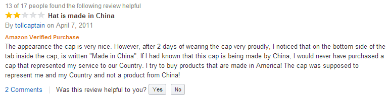 To end with, it would seem that even when hats like this are being purchased for actual Vietnam veterans problems continue to arise: