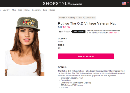 That being said, Rothco, who created the hat to, as far as I can tell, sell to actual Vietnam veterans, is not at fault here. Karmaloop taking this hat and selling it alongside other products like the one pictured on the right definitely is.