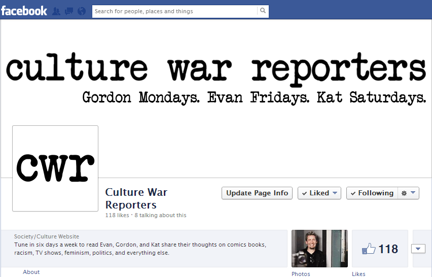 Yes, we realized that the only way we could possibly improve was to expand into what I hear the cool kids are calling “social media”. On our page you’ll be able to catch updates to this blog, of course, but also links to articles that we think are interesting or important [ideally both]. It’s also a great place to share your opinion, or suggest topics for us to write on.
