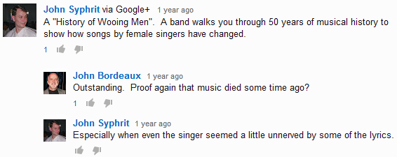 In other words, “What happened to music?” and, to draw it out to its logical conclusion, “What is wrong with us as a culture?”. It doesn’t matter how old the commenters are [the two above look to be middle-aged], they all decry the swift decline of the art form. It’s not something I entirely agree with.