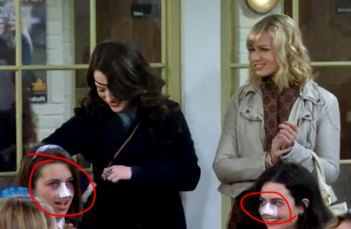 See those two girls down at the bottom? They have those bandages on their faces because they got nosejobs. Because they’re rich. That’s the joke. That’s the visual gag and [as far as I can remember] neither Max or Caroline say anything about it. That is incredible. And it’s a nice downplayed piece of humour as well.