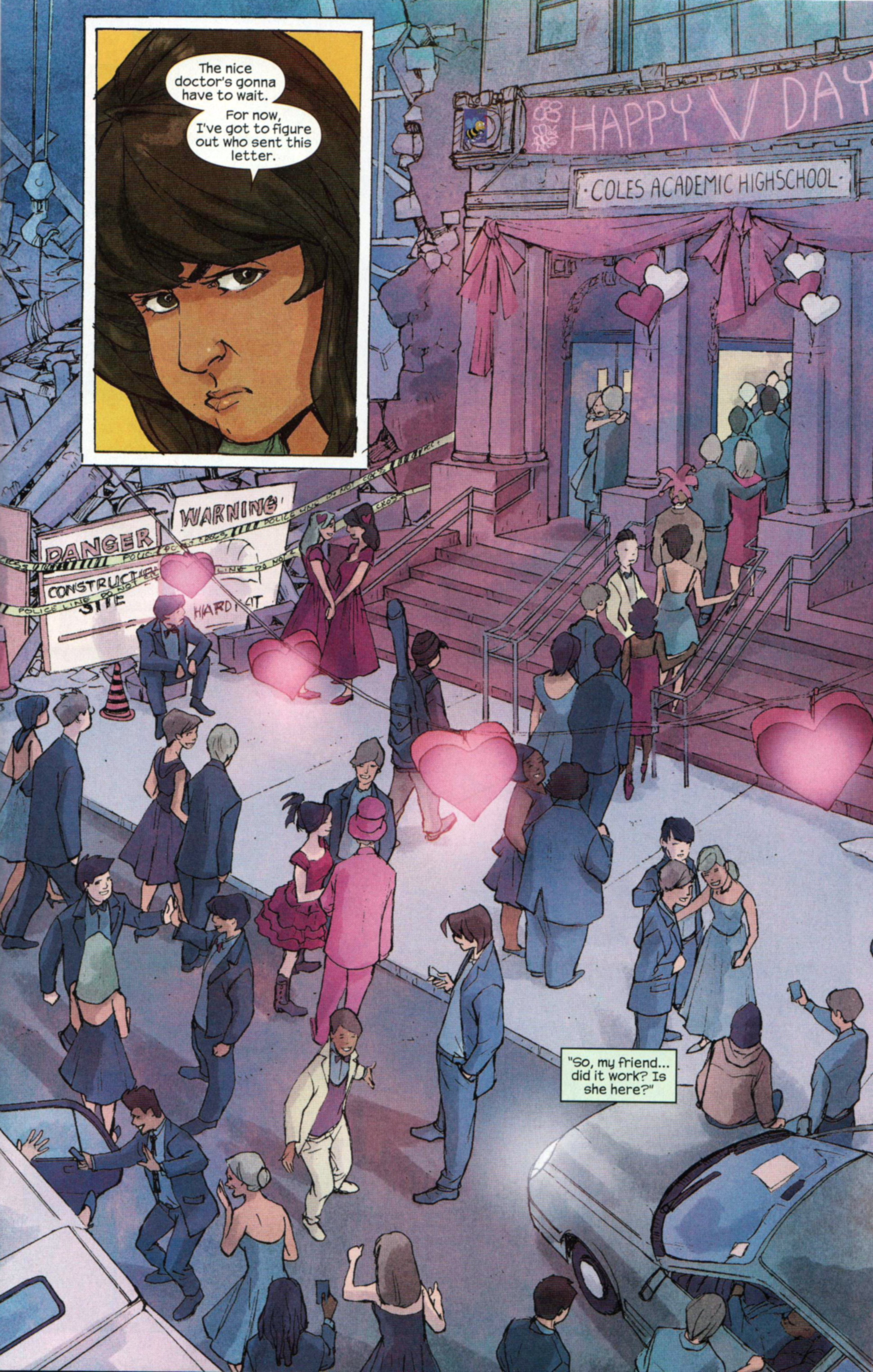 Brought to us by the usual crew with the new addition of artist Elmo Bondoc, this is a much-needed lull in the action. They can’t all be spitting truth about the generational divide, and it seems like forever since Kamala’s doing everyday normal high school kid stuff. Given the cocktail of emotions that the average aforementioned teen is comprised of,what better way to return to that part of her life than on Valentine’s Day?