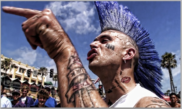 It is a bastardization of discourse from all sides. In an interview with Steve, a neo-Nazi punk type of young man, Steve says that he’s certain of his opinions about the falsehood of the Holocaust and other offensive things. To combat this, Comfort asks Steve to spell shop (Steve does) and then asks: “what do you do at a green light?” The question is a trick to get the mind to quickly respond “stop”, which is semi-associated with green lights and rhymes with “shop”, and the person answering looks silly. Sure enough, Steve responded “Stop” and looked silly. And then – well, then Comfort treated that like an actual argument for something.