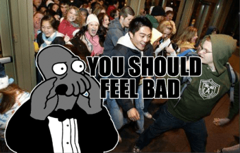 I almost don’t feel like I should have to explain this post. Look at that image on the right, look at that wave of flesh and hunger, which I can only compare to the somewhat recently released World War Z trailer. They move like an organism, a living being that flows into each store, ravenously grabbing at whatever they can.